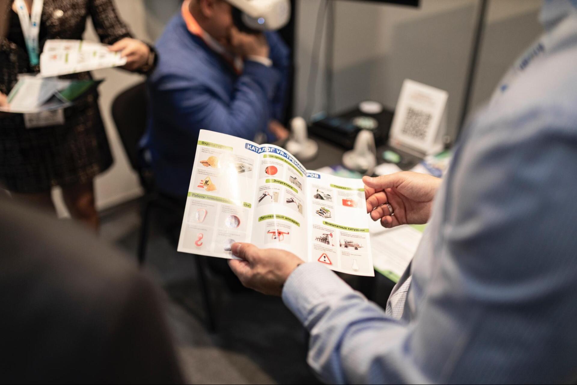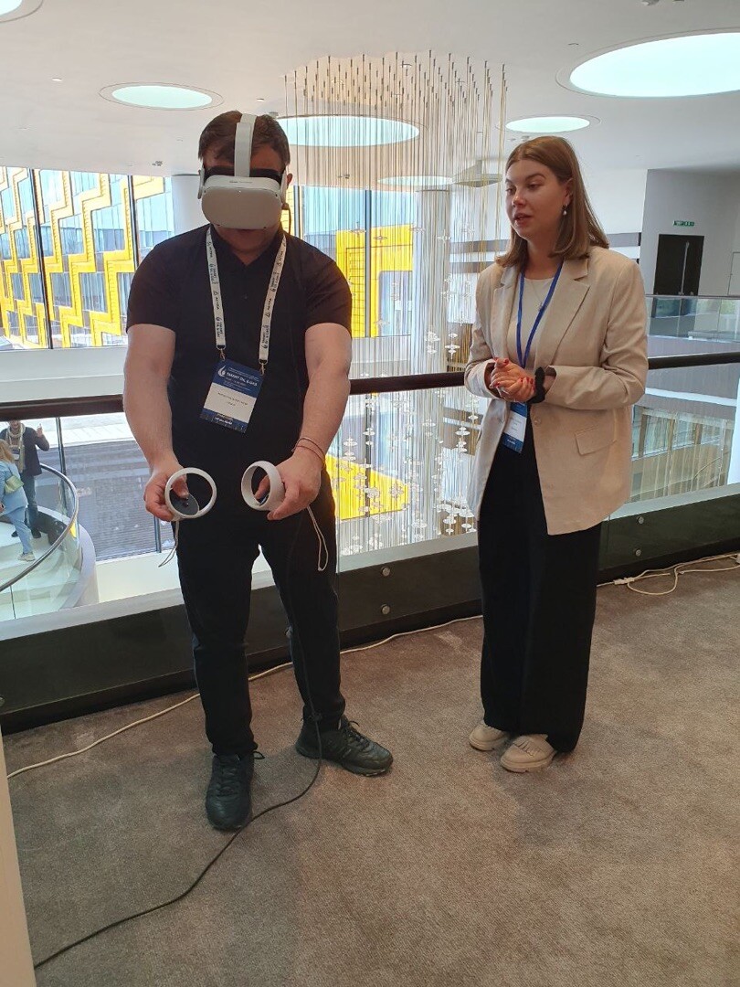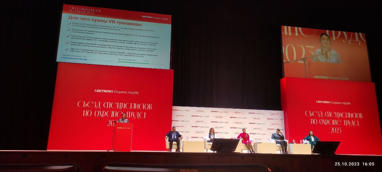 Выступления Екатерины Скрыпник и Марии Муравьёвой вызвали большой интерес, а стол нашей компании в игровом зале активно привлекал к себе внимание! Ведь VR-тренажёр – это одно из самых безопасных и при этом доступных по цене решений, чтобы значительно повысить навыки безопасного выполнения работ повышенной опасности у всего персонала, предотвратить множество травм и инцидентов.