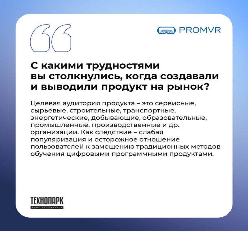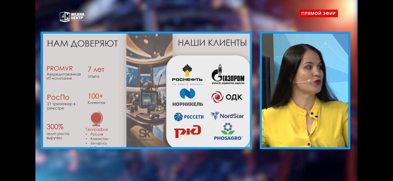 Мы усилили позиции на рынке VR-обучения для промышленности: кратно выросло количество лицензий и реализованных проектов, расширилась партнерская сеть, а решения PROMVR вышли на международные рынки (MENA). Качество внутренних процессов подтверждено сертификацией ISO 9001, это важный этап в укреплении устойчивости и управляемости компании.