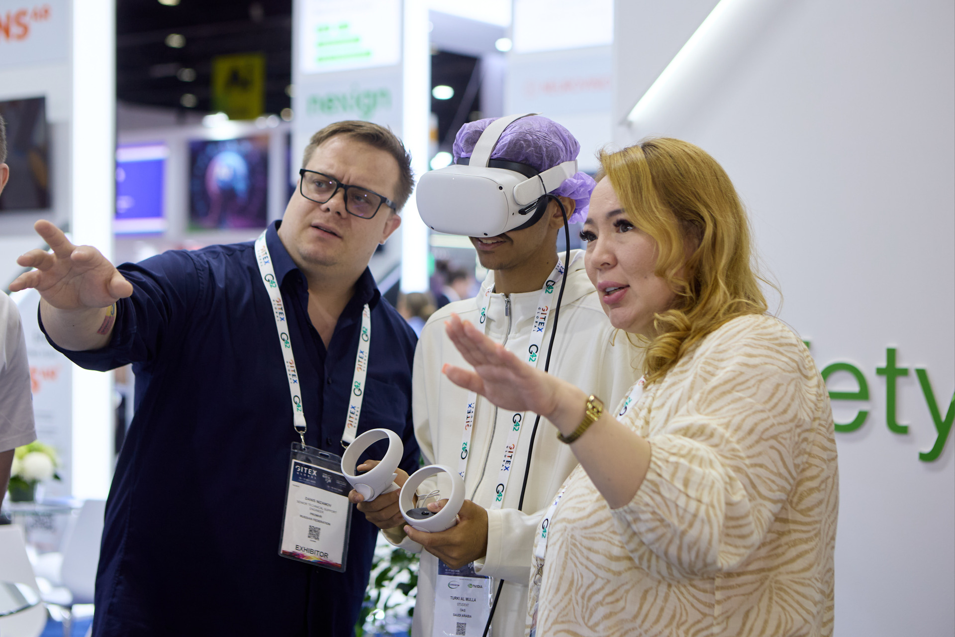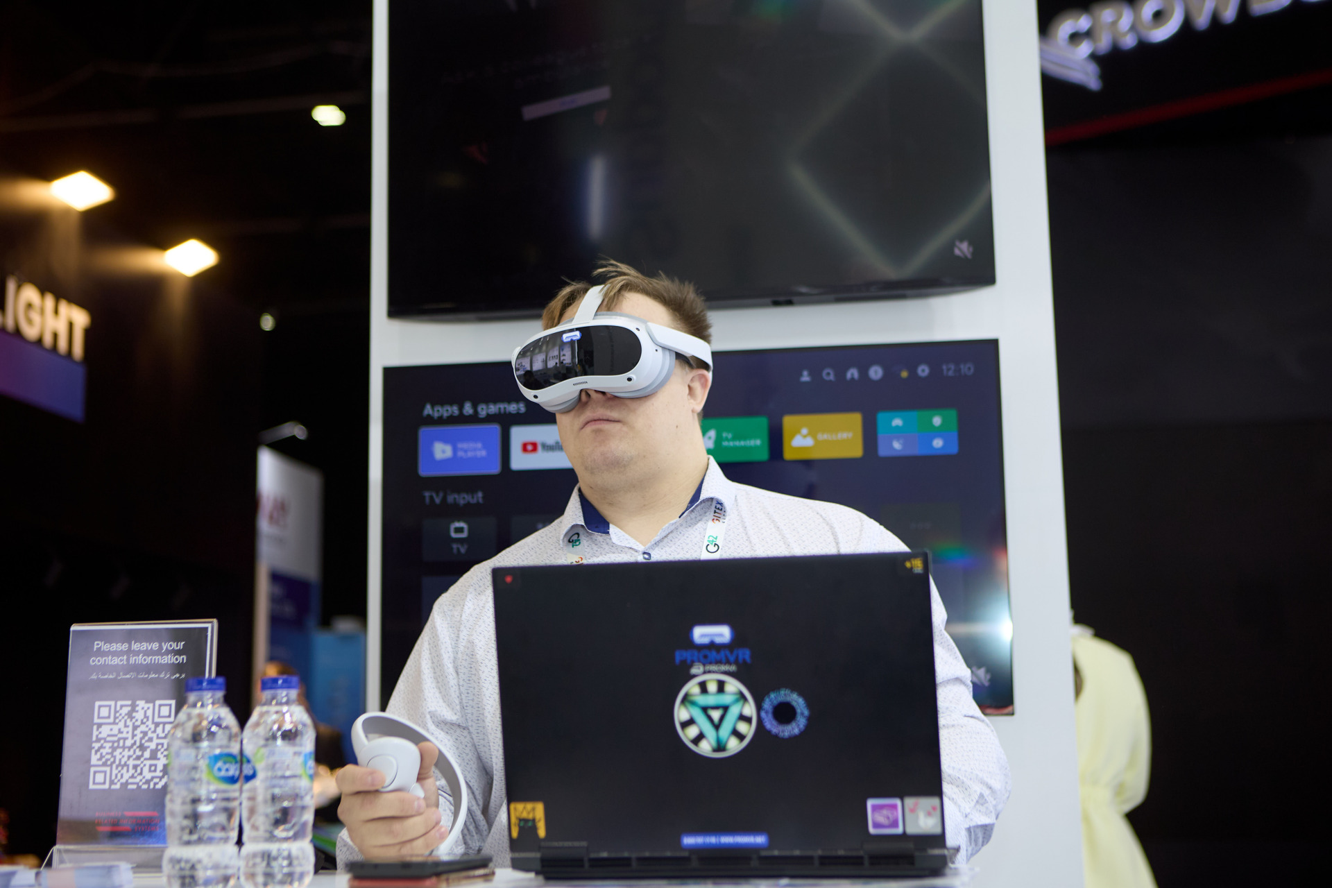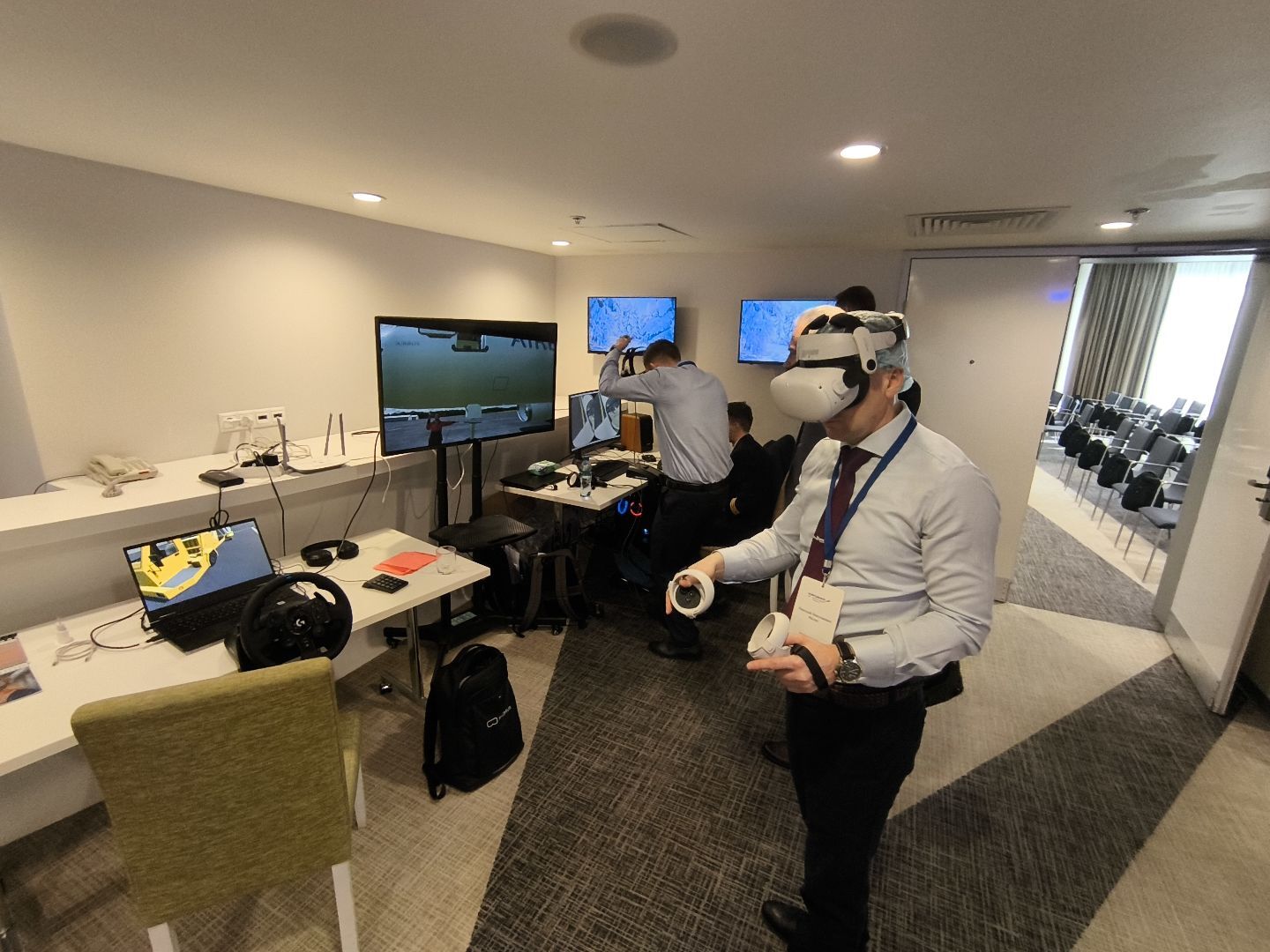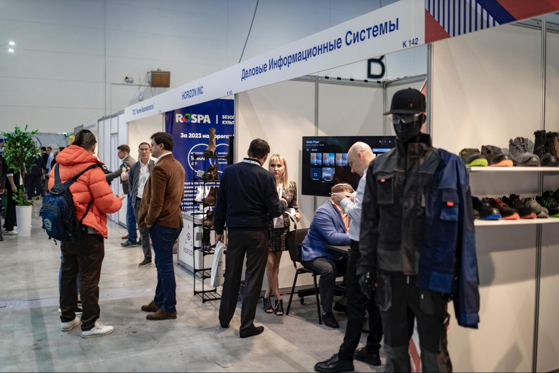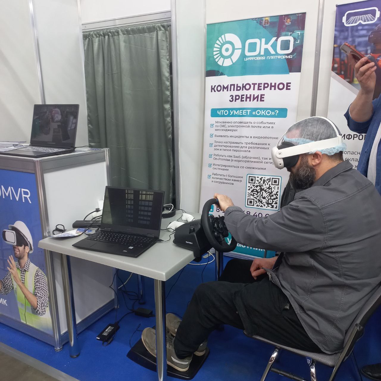 Также работал наш стенд, где каждый желающий мог увидеть в действии VR-тренажёры для промышленности. Они значительно ускоряют и упрощают обучение технике безопасности при проведении самых разных работ повышенной опасности: на высоте, на погрузчике, сварочных, такелажных; учат правильно оказывать первую помощь пострадавшим, отточить правильный набор действий при пожаре, замечать потенциально опасные ситуации на объекте.