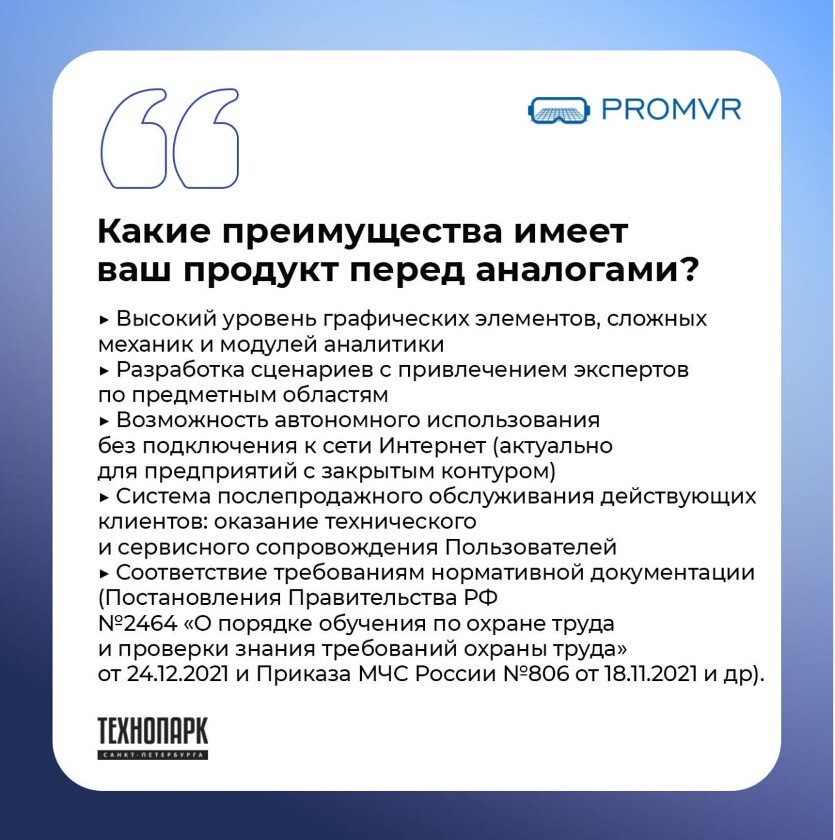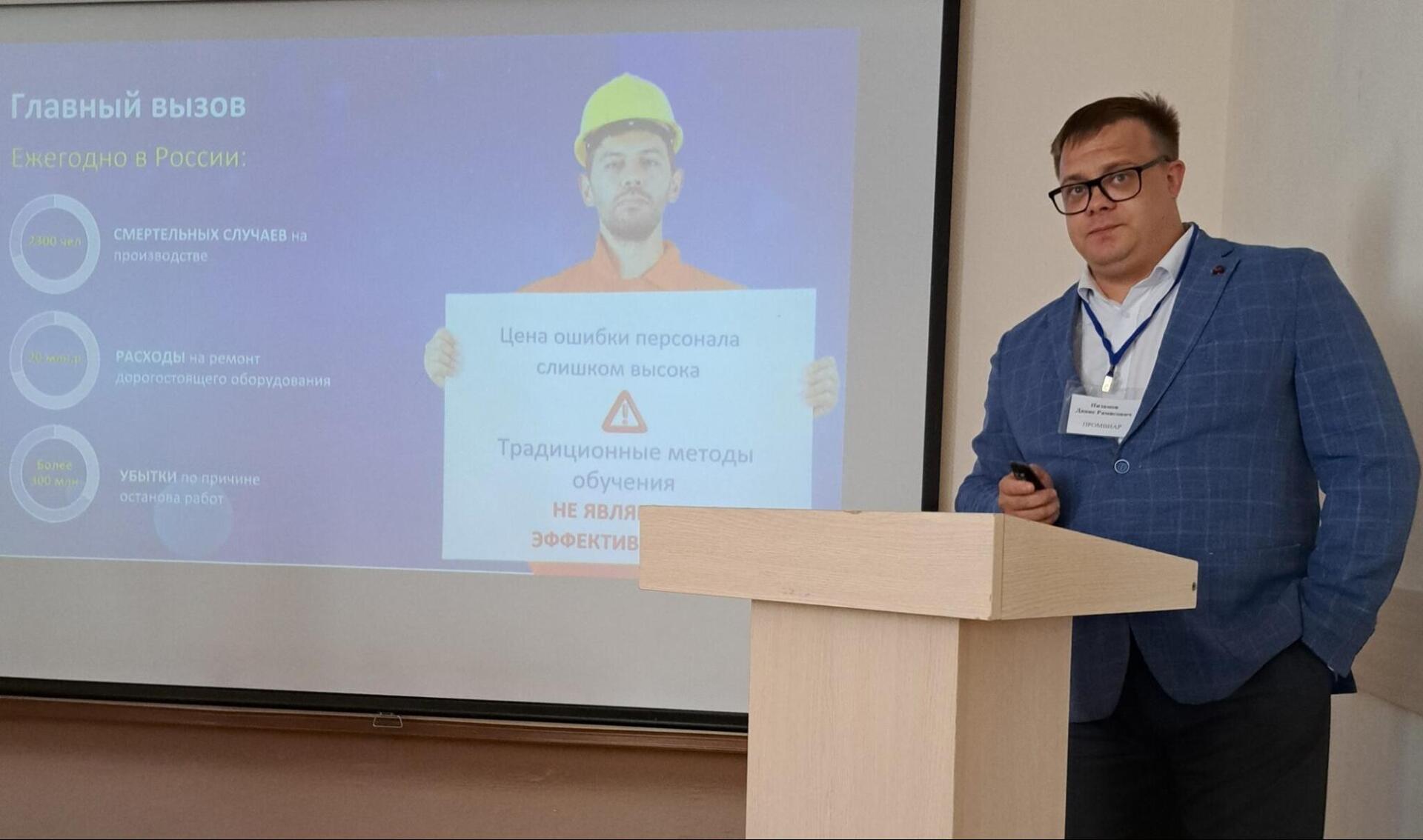 Проект «VR-тренажеры для обучения, отработки навыков, проверки знаний и повышения квалификации в области охраны труда и промышленной безопасности «ПРОМВИАР»» представлялся на оценку экспертному жюри в рамках финальной защиты проекта.