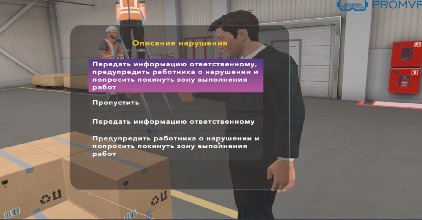 С помощью VR-тренажёра сотрудник не просто получает теоретические знания, но отрабатывает навыки поведения при ЧС или выполнения конкретных видов работ повышенной опасности. Если он нарушает технику безопасности, то своими глазами видит в виртуальной реальности последствия.