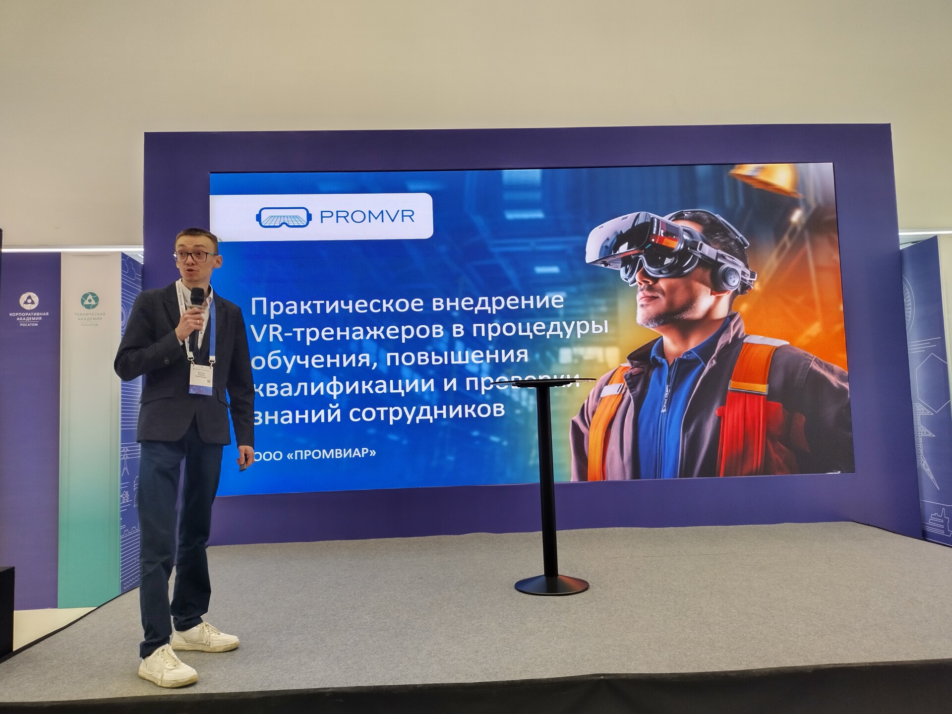Руководитель службы технической поддержки «ПРОМВИАР» выступил с докладом на тему «Использование VR-технологий при обучении и проверке знаний по охране труда, вопросам промышленной безопасности, выполнению работ повышенной опасности у работников производственных предприятий». По итогам участия в мероприятии команду «ПРОМВИАР» пригласили на другие предприятия ГК «Росатом», т.к. тема VR-тренажеров с каждым днем становится все более актуальной и привлекательной для большинства промышленных предприятий.