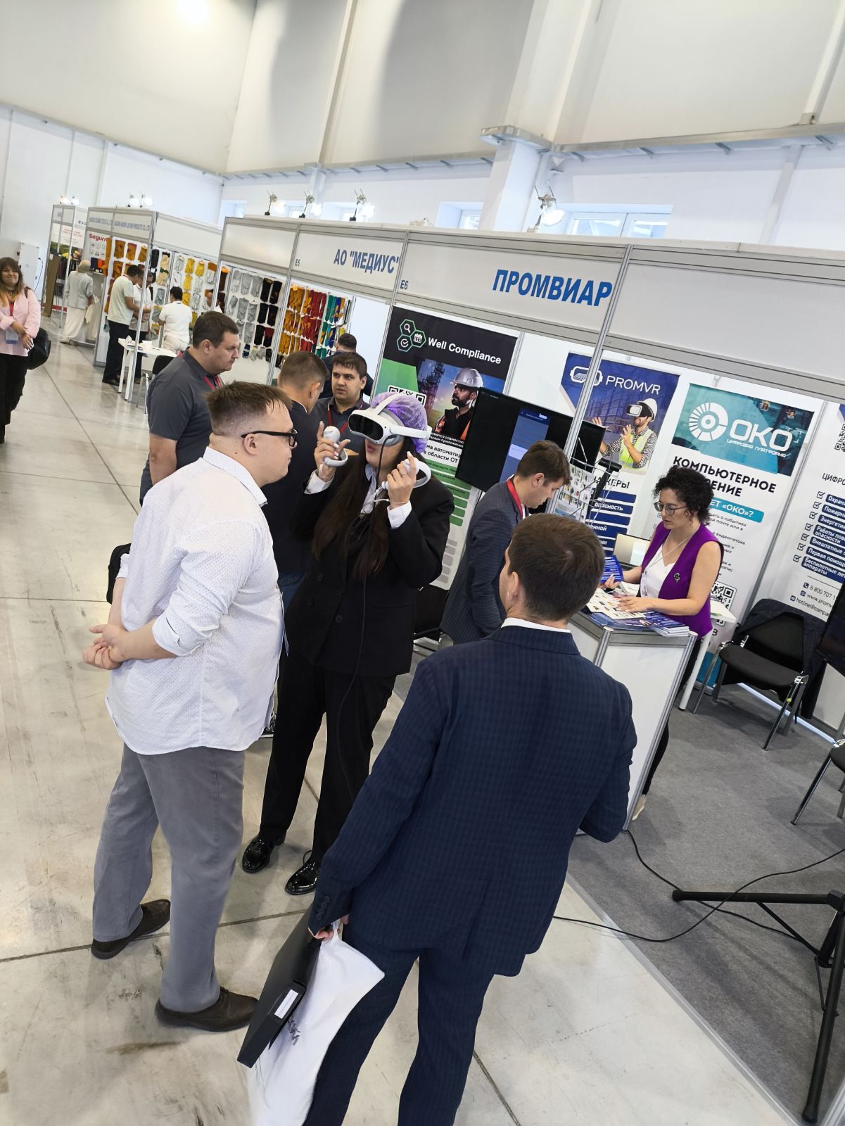 Был отмечен высокий интерес к стенду «ПРОМВИАР» среди участников мероприятия - руководителей дивизиона, предприятий дивизиона, инспекции, уполномоченных по культуре безопасности и охране труда, где представлялась возможность на себе протестировать VR-тренажеры.